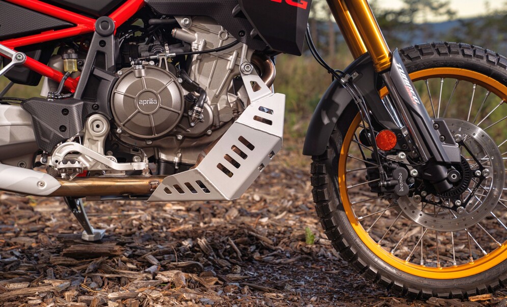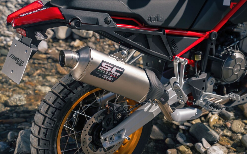 Die Tuareg Rally (und das gesamte Tuareg 2025-Sortiment) bekommt ein neues Motormanagement, das für eine reaktionsschnellere Gasannahme sorgt. Dies ermöglicht es dem Fahrer, Hindernisse in den anspruchsvollsten Offroad-Abschnitten mit einem Gasstoß leichter zu überwinden - ein entscheidender Vorteil beim Offroad-Fahren! Schließlich verfügt die Tuareg Rally über eine speziell entwickelte SC Project-Auspuffanlage, einschließlich eines vollständig titanbeschichteten Schalldämpfers und eines aggressiven Endkappendesigns im Rennsport-Stil. Im Übrigen tragen der Radsatz und die Auspuffanlage dazu bei, das Gesamtgewicht der Aprilia Tuareg Rally von 204 auf 199 Kilo fahrfertig zu reduzieren.