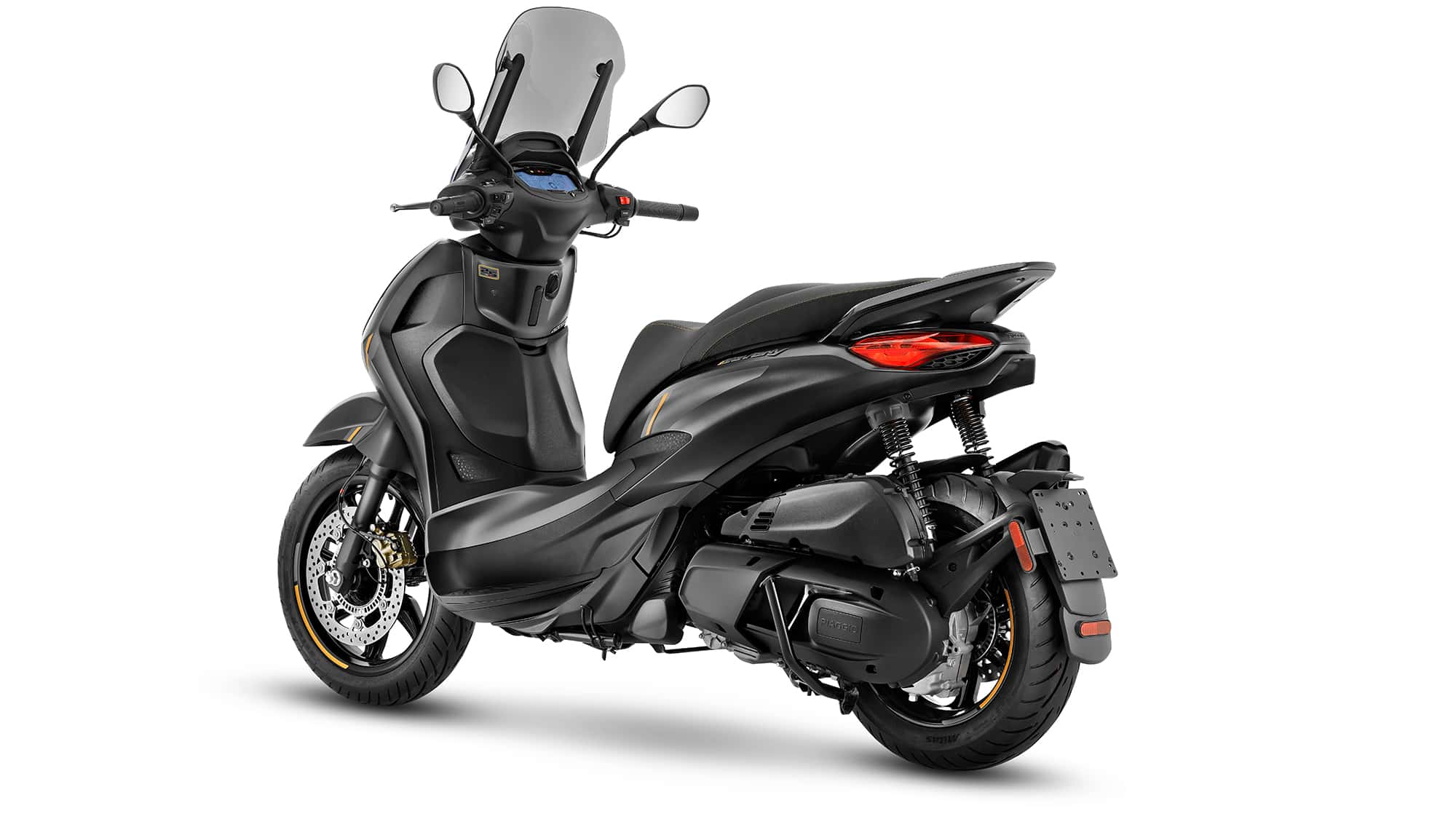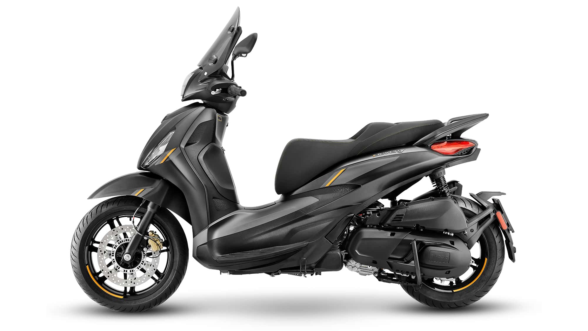 Nicht nur das 25-jährige Jubiläum der Piaggio Beverly, sondern zugleich mehr als eine halbe Million verkaufte Exemplare feiert das Sondermodell 25th Anniversary. Dessen wesentliche Erkennungsmerkmale sind die matt-dunkelgraue Grundfarbe "Grigio 25th Anniversary" sowie hellgraue Grafik-Elemente und – vor allem – die festlichen, goldfarbenen Akzente.