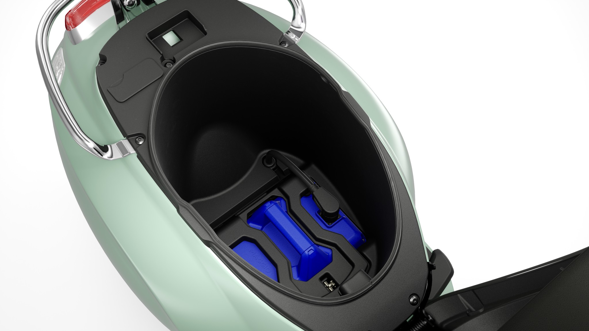 Die Modelle der neuen Vespa-Reihe mit kleiner Karosserie sind auch mit Elektromotor erhältlich, und zwar als Moped-Version (Moped-konform und mit Geschwindigkeitsbegrenzung auf 45 km/h) und als Motorrad-Version, die mit dem Ausstattungspaket Primavera Tech erhältlich ist. Bei allen Modellen mit Elektroantrieb kommt die Technologie zum Einsatz, die in den letzten Jahren für die Vespa Elettrica, die 2018 auf den Markt kam, entwickelt wurde. Der Elektromotor ist in die Nabe des Hinterrads integriert, während sich die Batterie unter dem Sitz befindet. Die Vespa Primavera Elettrica und die Vespa Sprint S Elettrica (bzw. die Moped-Versionen) profitieren außerdem davon, dass die Batterie in Sekundenschnelle ausgebaut werden kann, indem das Verbindungskabel zum Fahrzeug abgezogen wird. Mitsamt Griff lässt sie sich leicht transportieren und bequem zu Hause, im Büro oder wo auch immer aufladen.